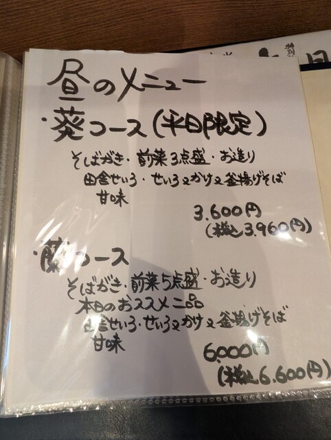 前菜を食べ終えて蕎麦。二色そば(1870円)を注文した。
