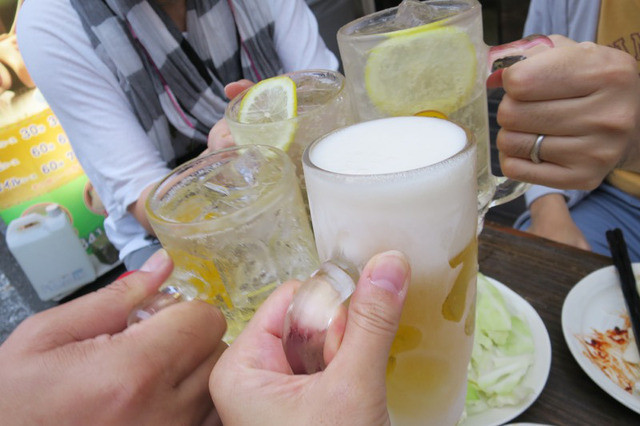 まずはビール(470円)で乾杯です。天気がいい日のテラス席(?)で飲むビールは最高ですねぇ。