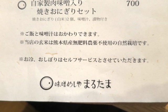 ちなみに、「味噌めしやまるたま」の玄米は熊本県産の無肥料・農薬不使用の自然栽培米だそうです。お味噌も無添加・天然醸造なのですが、お米にもこだわっているんですね!