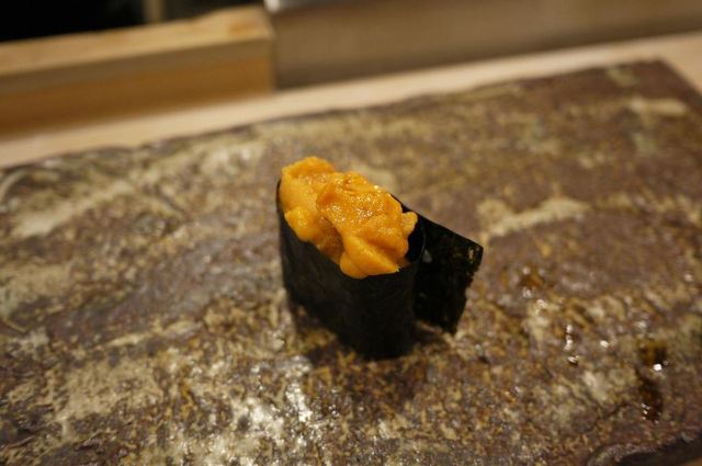 毛蟹は、大将が差し出す手のひらから直接受け取ります。シャリの握り方がとても柔らかで、持っているだけでほろほろこぼれてしまいそうに。毛蟹って、体は小さいけれど旨味がギュ〜ッと詰まった食材ですね。