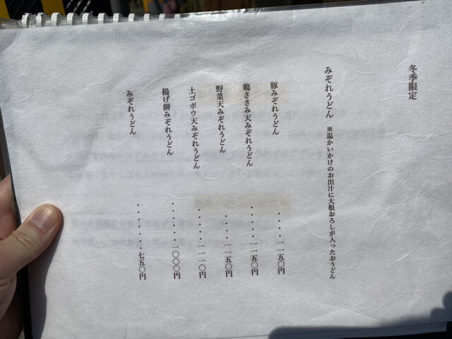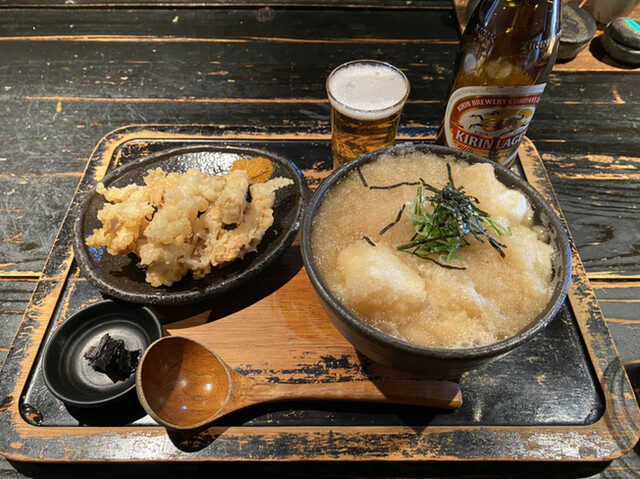 料理は冬季限定の揚げ餅みぞれうどんと、土ゴボウの天麩羅を注文しました。