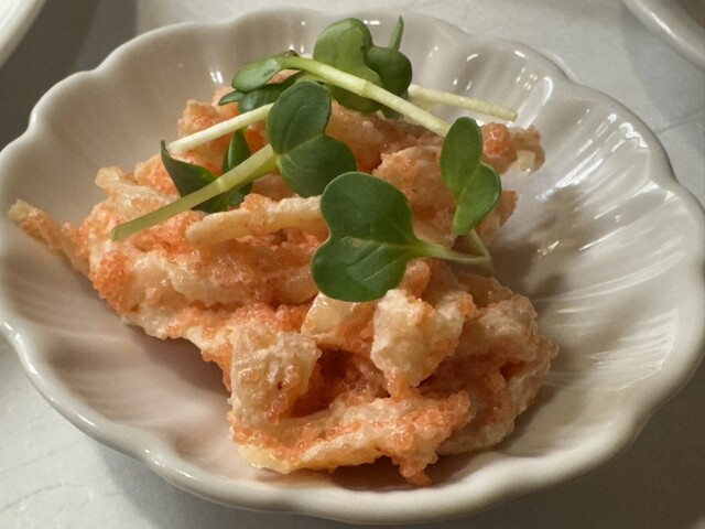 まずはお通し?として豆苗の粉チーズ?で和えたような料理が提供されました。