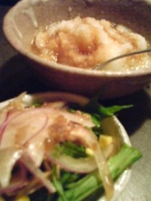 お通しと、大根おろしをポン酢(お醤油とえらべます)で頂きます。