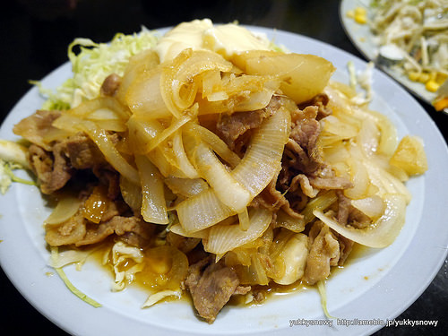 ここで、もやし、ナス、コーンなどの野菜炒めの登場。