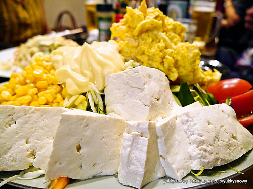 城壁のようなお豆腐、そびえ立つタマゴサラダタワー。