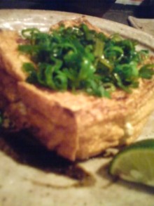 L字カウンターになっていて、焼き場がみえるようになっているのですが、厚揚げを焼いているのを見て、最後の一個残っているときいてついついオーダーしちゃいました。