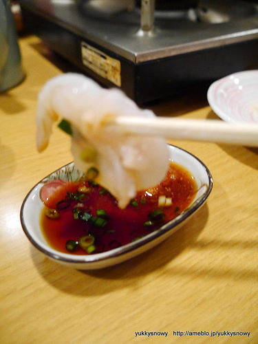 透明な皮(みかわ)と白子をしゃぶしゃぶ用にスタンバイ。