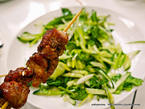 青唐辛子、きゅうり、香菜のサラダ 羊肉串