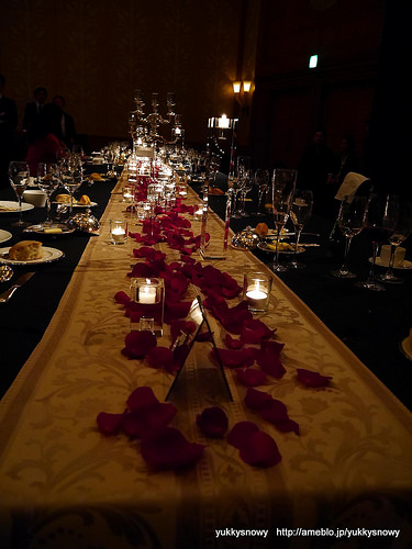 テーブルには薔薇の花びらが舞い、ロイヤルな雰囲気です。