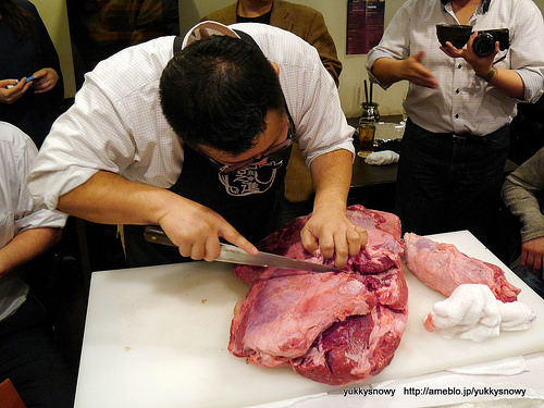 当日は岩手から社長の千葉さんがみずからいらっしゃってお肉をさばいてくださいました。