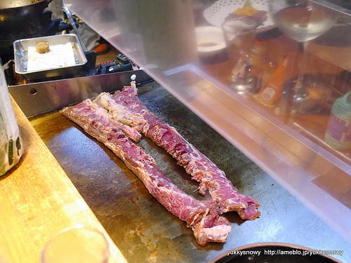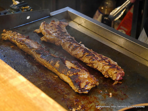 目の前の大きな鉄板でお肉が焼かれていきます。