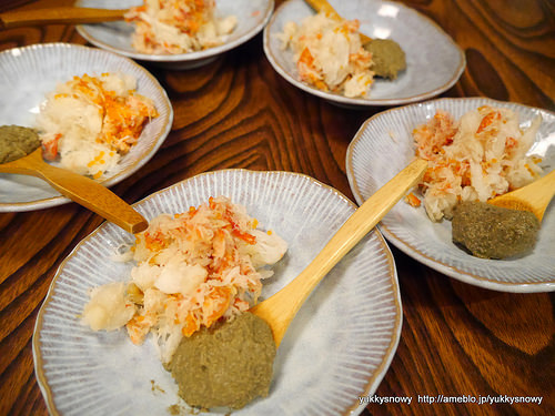 ▶兵庫かすみ町産松葉蟹蟹味噌ししゃも魚卵乗せ
