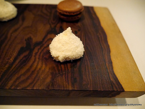 トリュフがのったアイスクリームは、トリュフの匂いを移した卵で作ったアングレーズに、刻んだトリュフが入っています。