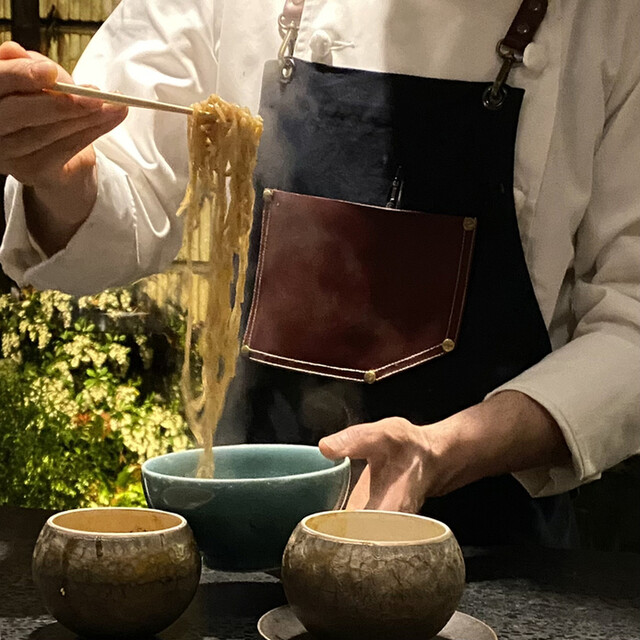 アイナメに添えられたハシヅメ製麺にも特別に山椒が練り込まれていた。