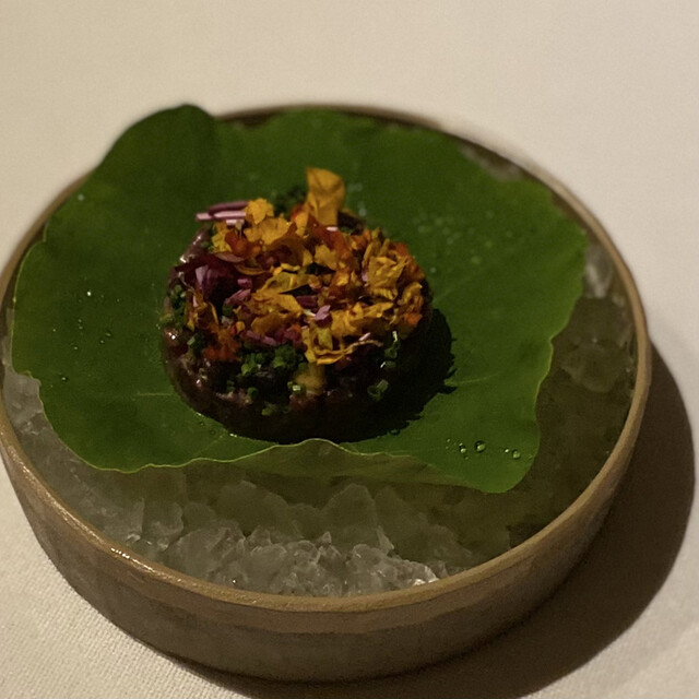 シェフが釣った佐渡クロマグロのマリネにイワシクリーム
