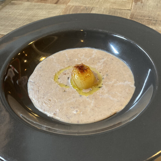スープはシーズン最後の栗を渋皮を少し残して燻製にしてスープにしたとのことで、絶妙な苦味が美味しい。さすがのセンス。