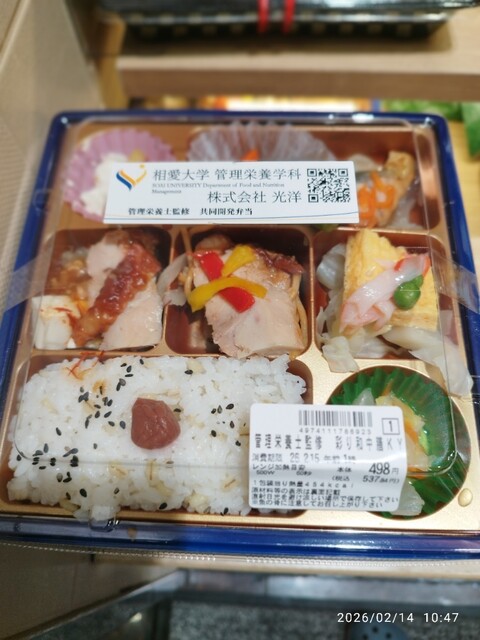 私は、相愛大学 管理栄養学科さんと、株式会社光洋さんのコラボのお弁当いただきました。