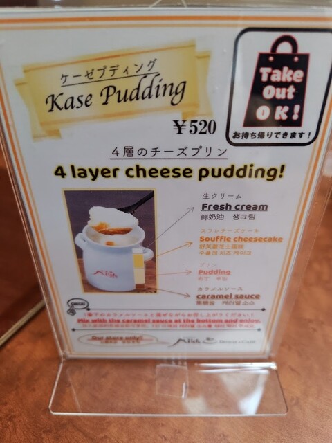 可愛いミルク瓶に入ったケーゼプディングを注文して