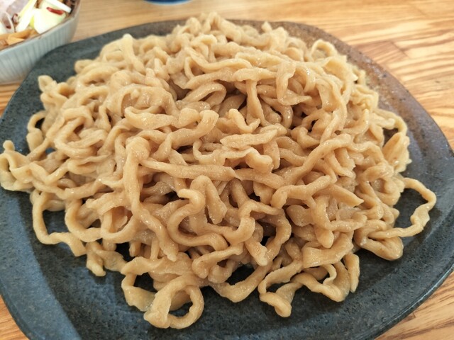 自家製強い縮れ太麺は店主の方(たしか同い年くらい、アラフォー)が粉まみれになりながら仕込んだ逸品で、茹で前に手で強くもんでいるのが印象的