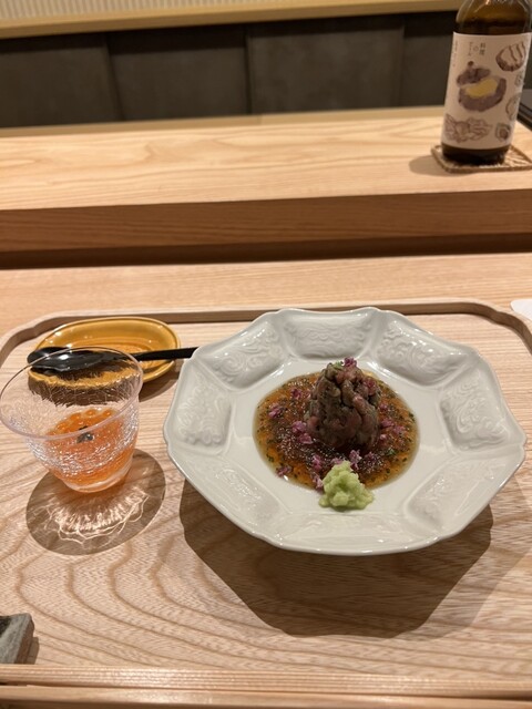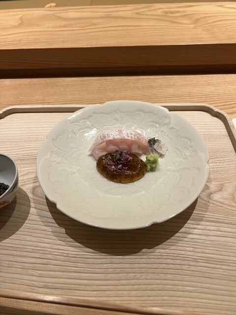 甘鯛の質感とキャビアの塩味が重なり、旨味の層が立体的に舌の上に広がる一皿。小泉さんおすすめのキャビア&ワサビにはハマった。