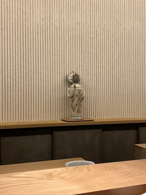 店内は直線的で凛とした雰囲気。カウンター越しに飾られた陶器や調度品も含め、美意識の通った世界が広がります。