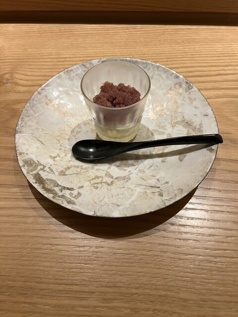 甘味:長野パープルと巨峰のシャーベットに、塩チーズソースをかけたデザート。