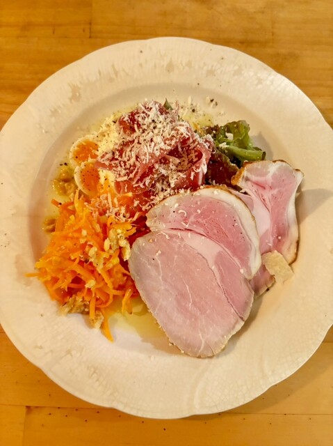 人参マリネ ポテトサラダ 結旨豚のローストポーク