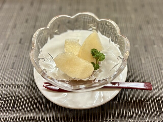 島根県隠岐産の剣先いかは、塩の代わりにからすみをかけてあり、こちらもとけるような美味しさ。