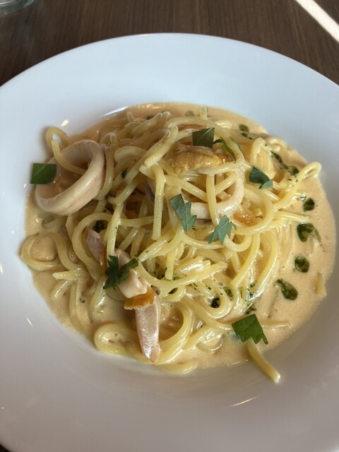 ここに来たら「ウニとイカの濃厚クリームパスタ 1,100円」がマスト。