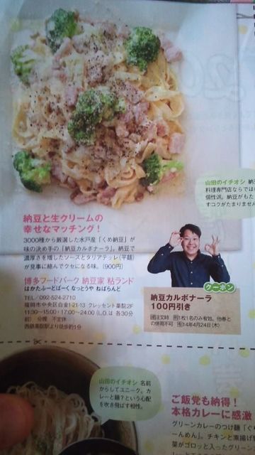★和風納豆カルボナーラ、サラダ(博多フードパーク 納豆家 粘ランド) :納豆がふんだんに使われているけどただの色物じゃなく料理としての質や対応もガチ!