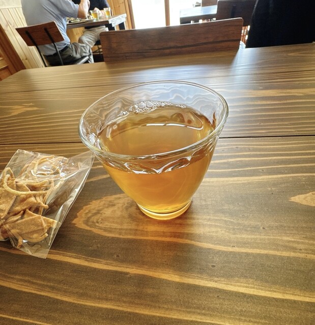 「お冷やはセルフです、待つ間にどうぞ」と袋入りの蕎麦菓子を貰った