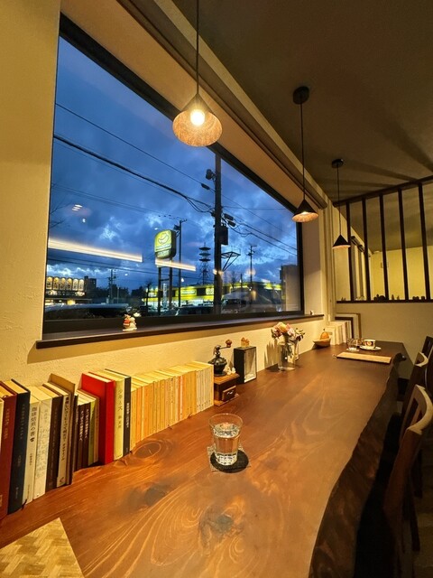12号線方向の景色が見える窓際のカウンター席へ座り走る車を眺めていると、ここで一日中過ごすのも全然不可能ではないような気持ちになる