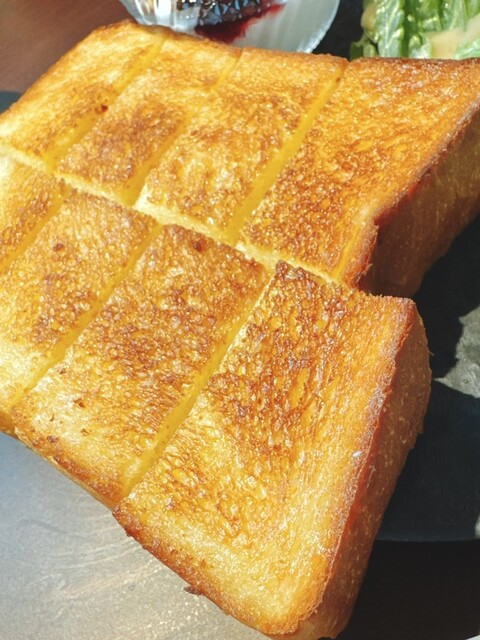 温めたトースターで表面が程よいきつね色にカリッと香ばしく焼き上げられ、たっぷり塗られたバターの風味が優雅