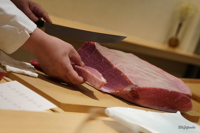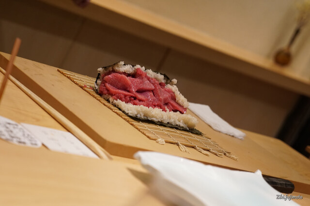 今回のマグロは、延縄で捕まえた青森県大畑のもの。今回は、香りより旨みの方が優っていた。