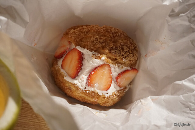 中には、マリトッツォ風のシュークリームもあった。「風」と書いたのは、料理長のお兄さん曰く、ブームになる前から出しているので最近になって流行り始めたマリトッツォと一緒にしてほしくないかららしい(笑)