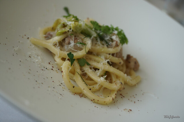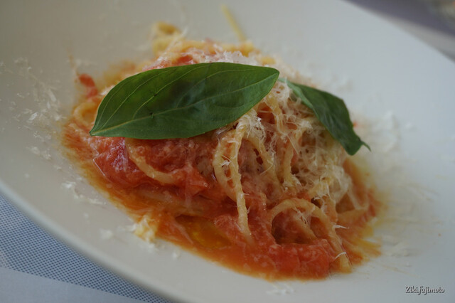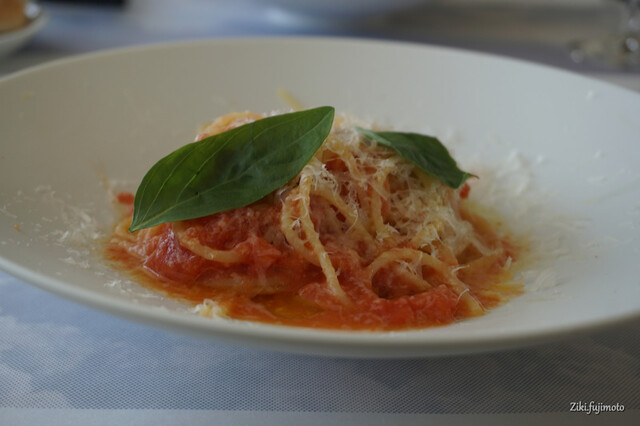 こちらも地のものを多用しているとのこと。トマトも甘くほど良い酸味。モッツアレラは、ブリアンツァでも使っているものだろうか。これまた旨い。