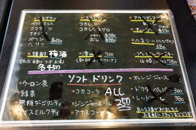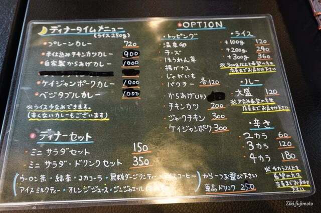 メニューは、カレーとおつまみ類。あとアルコール類を含むドリンク。