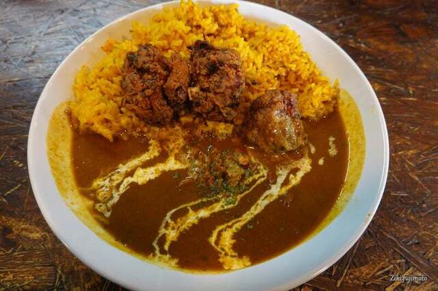 ライスは、ターメリックライスでもなくカレーピラフでもない。不思議な感じだが、このルート合っていて旨い。