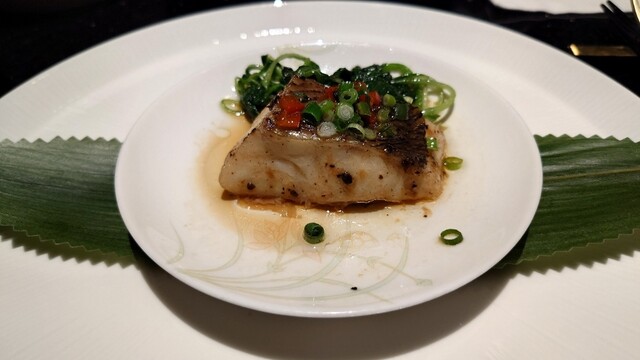 ダイコン餅のアミューズからはじまり、前菜や点心、姫鯛のメインにクリスピーチャーハン、デザートの温かい杏仁スープとどれも見た目も味も香りも食感も楽しめる美味しいお料理。