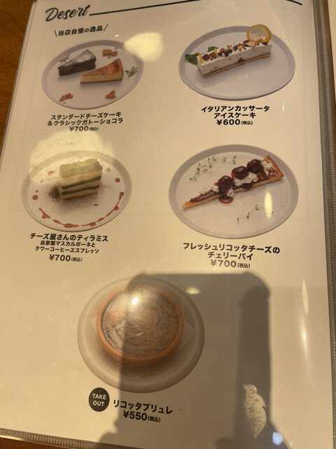 チーズだけで食べるのはあまり好きではないので普段は食べないのですが、チーズが美味しいみたいなので、チーズと生ハムのセット、塩ミルクのジェラート、クアトロフォルマッジなどを頼みました。