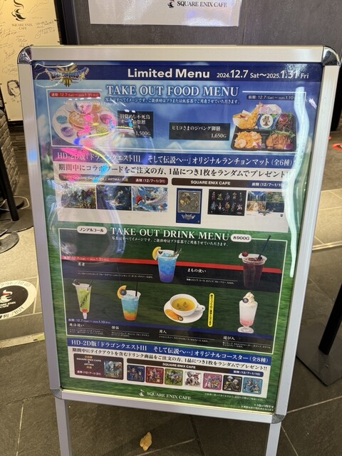 たまたま通りがかったのですが、スクエニのカフェでしかもドラクエⅢとのコラボ、入店するしかないと思いました。