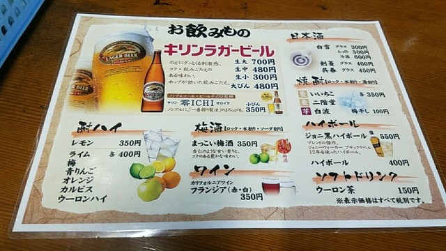 最近の居酒屋と比較すると割と高めの設定。