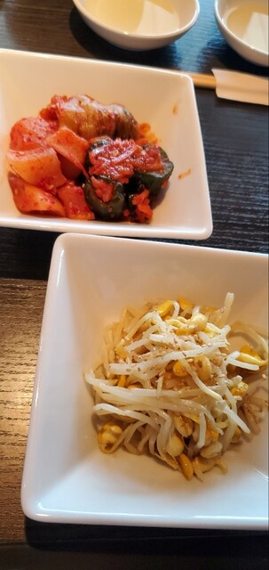 キムチ盛り合わせ、もやしナムル