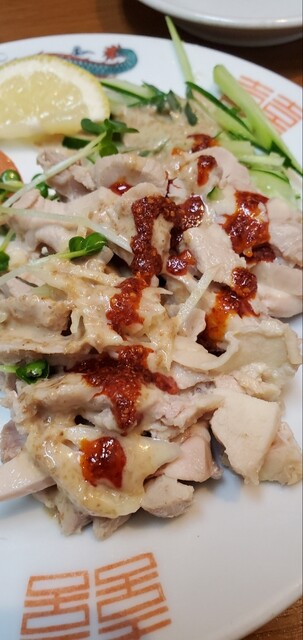 合わせるアテは、ド定番の蒸し鶏と肉団子ハーフ。