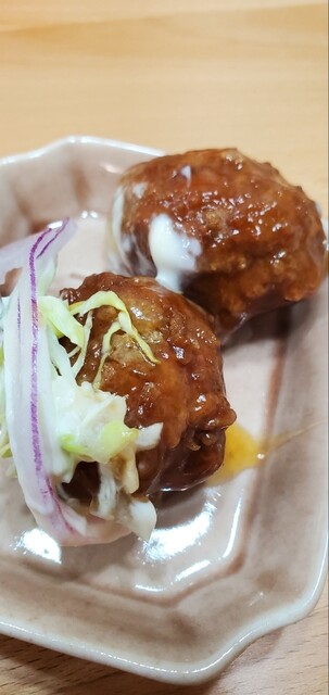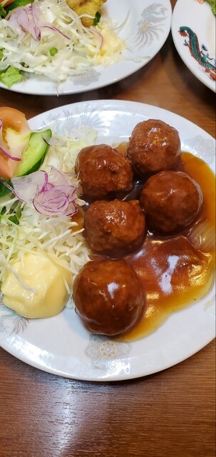 自家製の肉団子を甘酢餡で和えた肉団子にはマヨネーズをつけていただくとサイコーに旨い(≧▽≦)ウマウマ