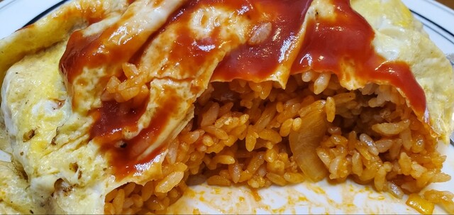 中華ケチャップライスはこってりした味わいでまろやかな玉子とよく合う。