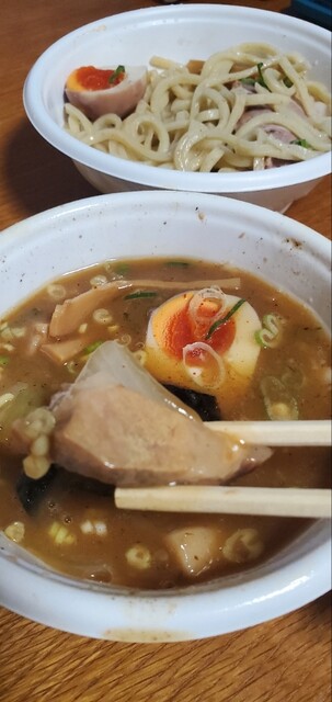 続いてチャーシュー、味玉と続けざまに投入するが、スープはそれなりの温度を保っている。