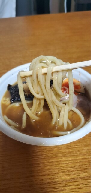 極太のストレート麺に粘度の高いスープがよく絡んで旨いっ!!