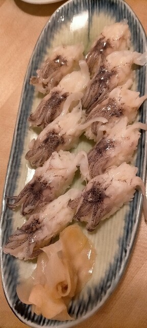お約束でイカフライ。大皿に山盛りで届き、熱々で頂きました。寿司と合うし、柔らかなイカが美味いです。