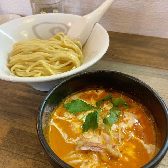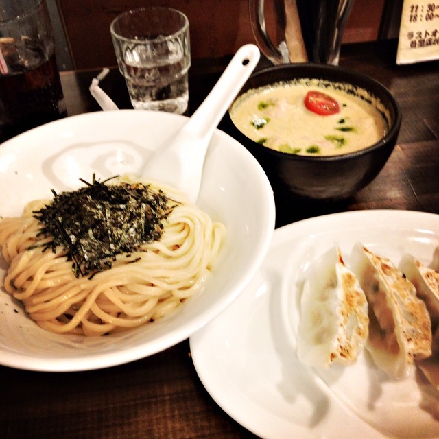 冷やしカレーつけ麺。肉トッピング。絶品!!